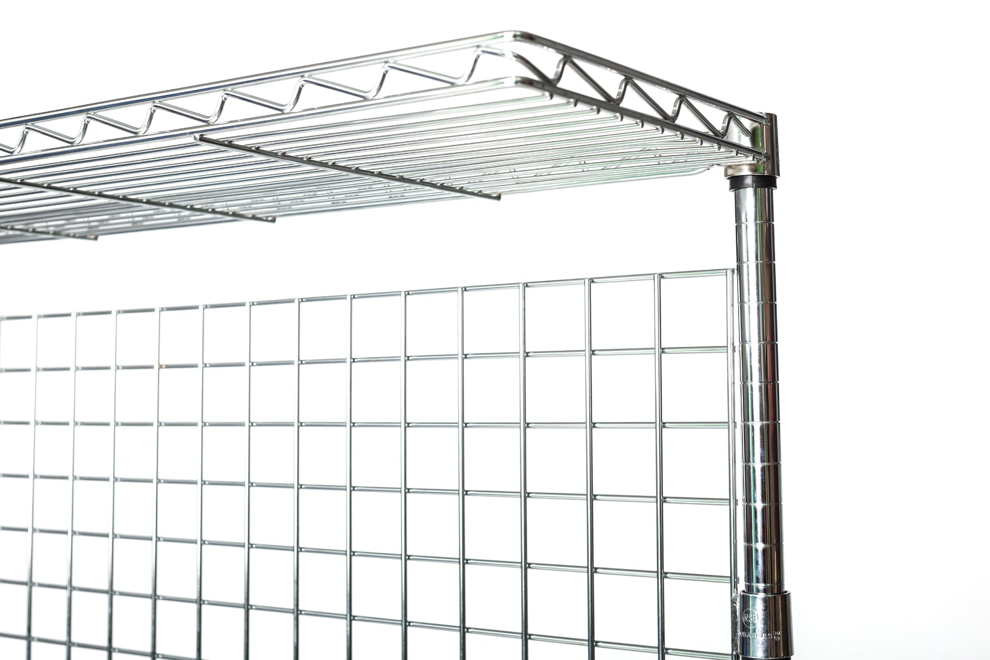 14" Deep x 48" Wide x 63" High Master Chrome Bakers Rack used to display and store all kitchen utilities. Create stylish and practical storage space in your kitchen. Add a butcher block for the home cook to chop, prepare and serve food.