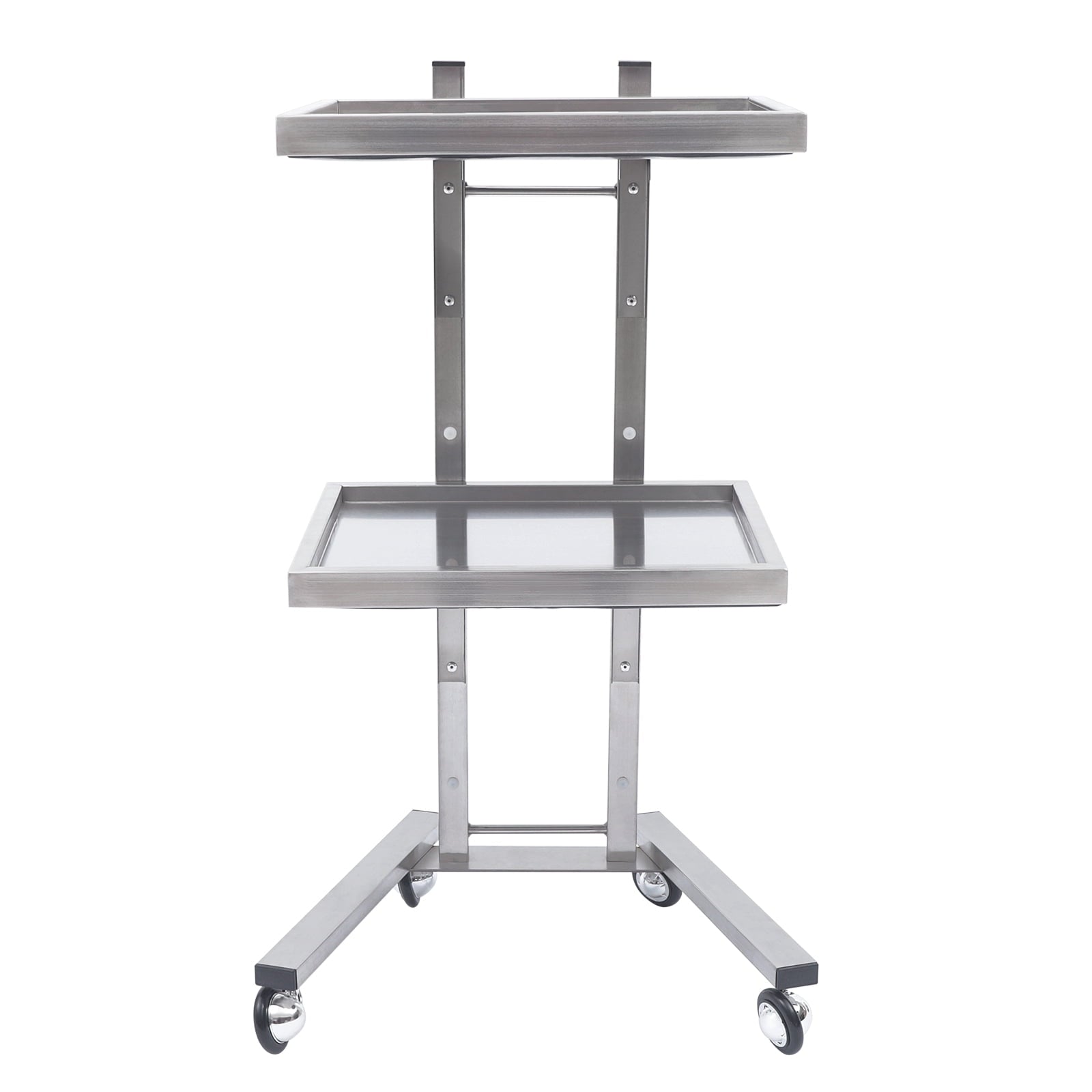 2-Tier Metal Salon Trolley Hairdressing Cart with Wheels Stainless Steel Silver