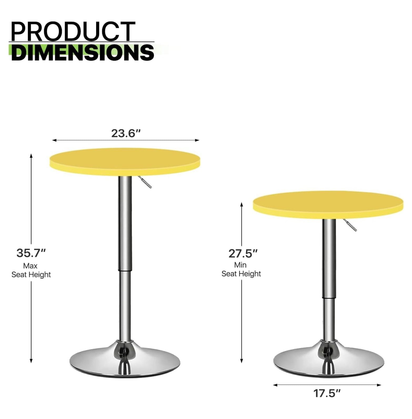 23.5in Round Adjustable Height Wood Bar Pub Table Adjustable Range 27.5in -36in Living Room Dining Room Bar Cocktail Table (Yellow)