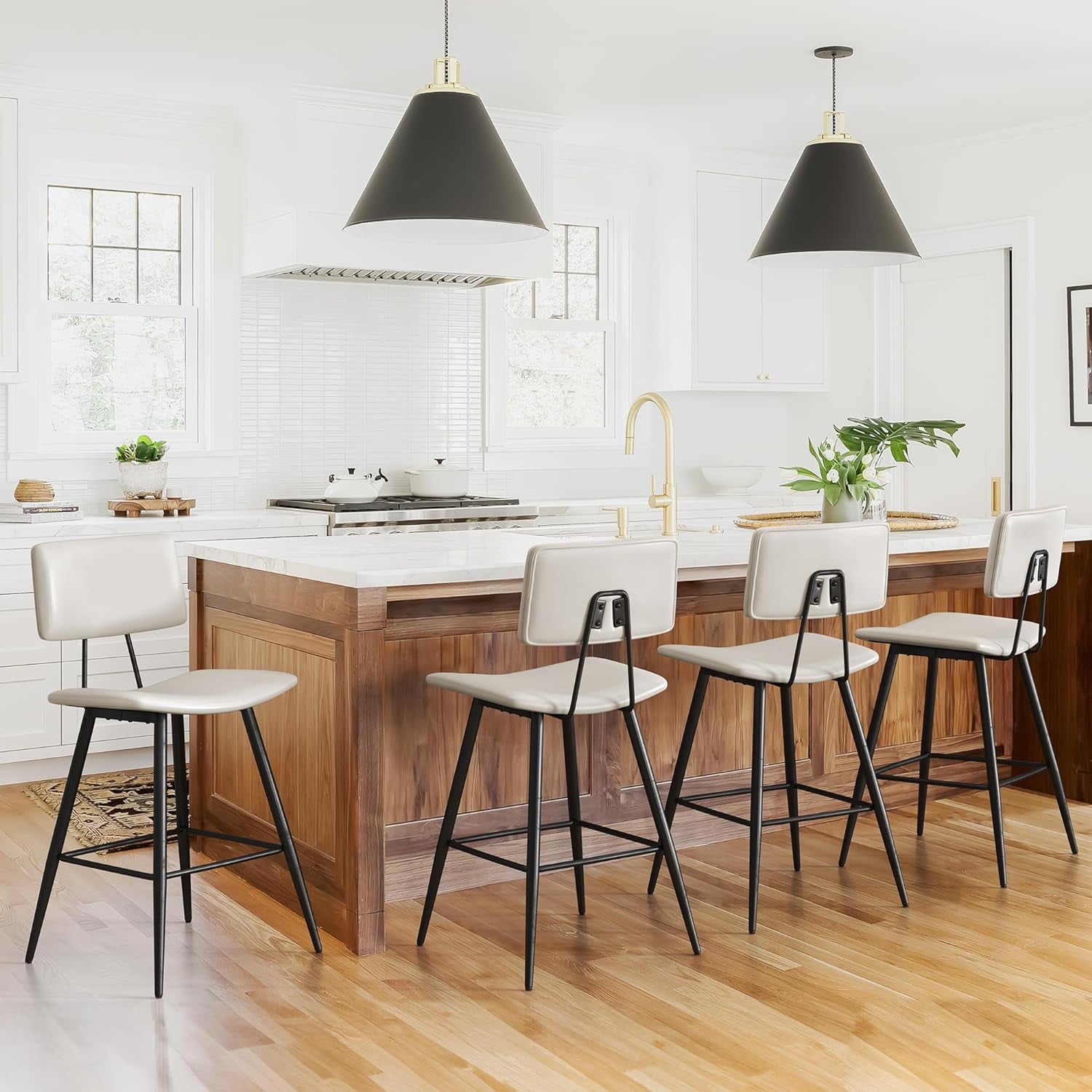 Dycanpo 24.5in Counter Height Bar Stools Set of 4, Faux Leather Upholstered Barstools, White