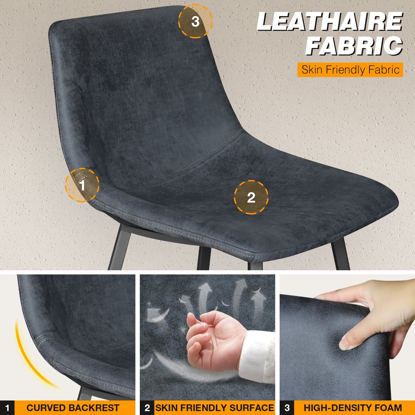 - -This tech cloth dining chairs combined of antique Gray color and modern design can match any decoration or style, are great for dining room, kitchen, living room, entertainment area, rest area, restaurant, office, exhibition, coffee house and so on.