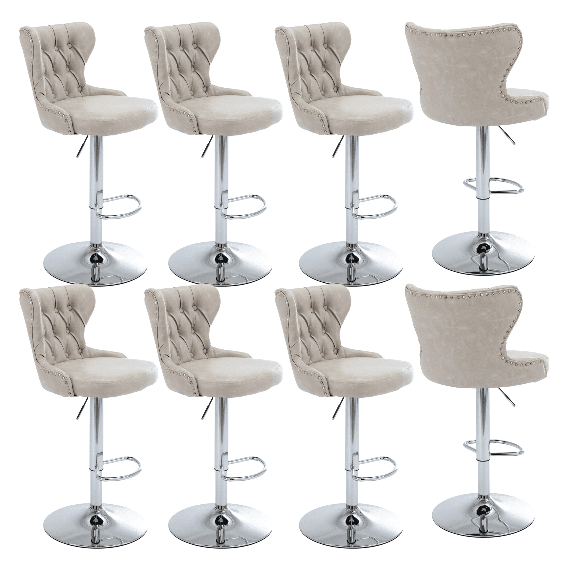 25-33 Inch PU Leather Bar Stools, Counter Height Adjustable Swivel Barstools High Bar Chairs with Back & Metal Base, Stools Chair with Footrest for Home Kitchen Island, Pub(Beige,Set of 2)