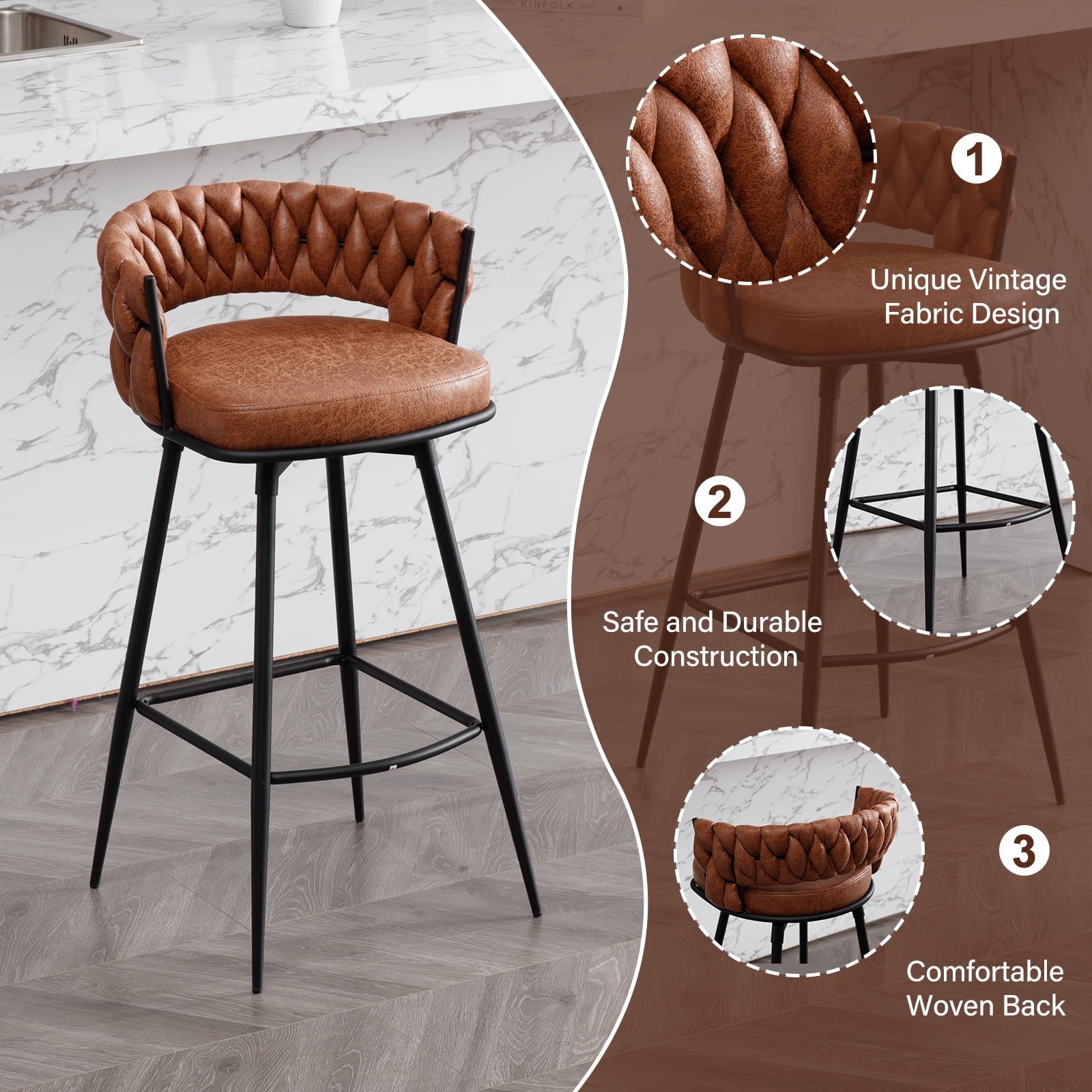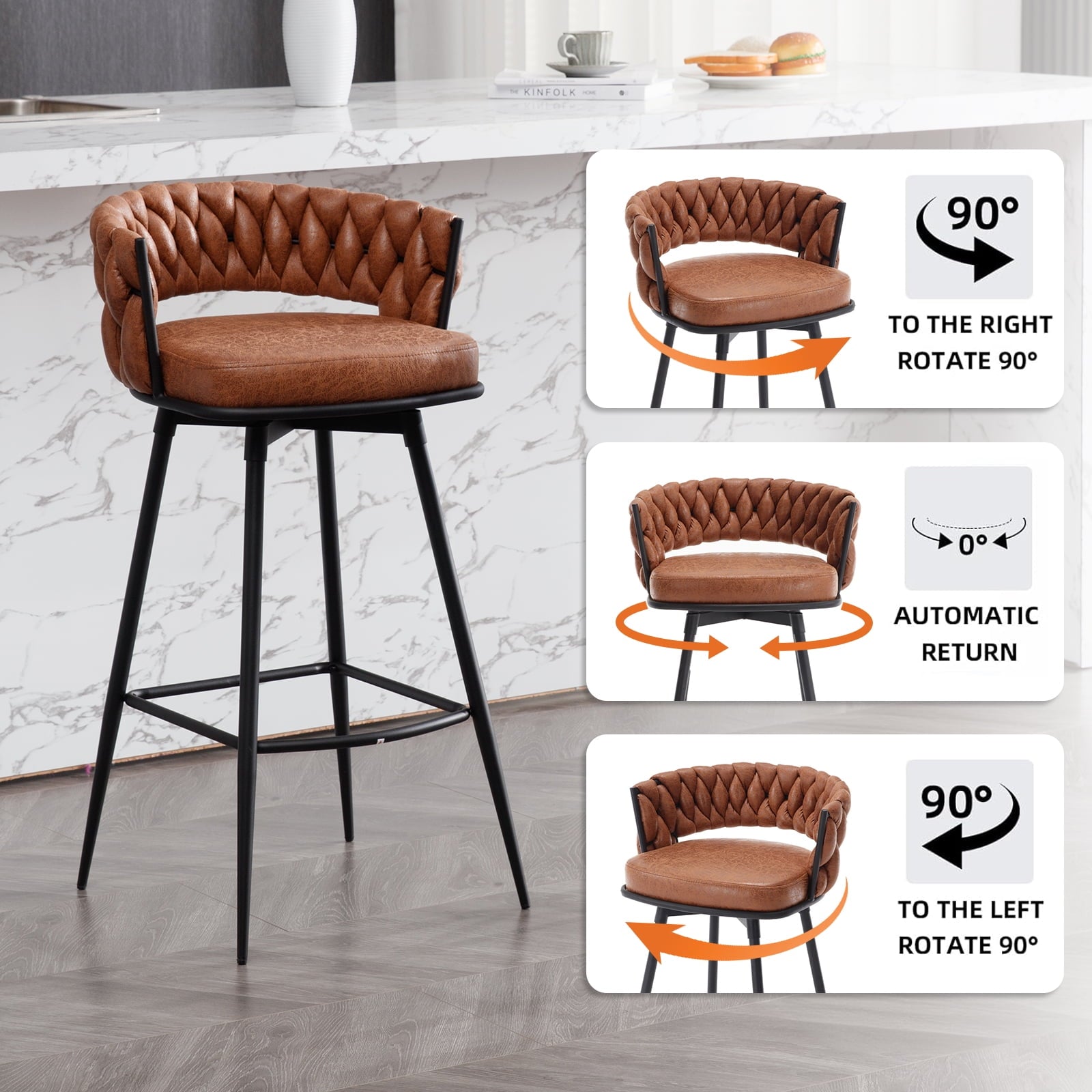 - This 26 inch barstools are designed with a swivel function, allowing for easy rotation, Whether engaging in lively conversations, reaching for items, or simply adjusting one's position, It provides a comfortable and convenient seating experience, making it an ideal choice for various settings.