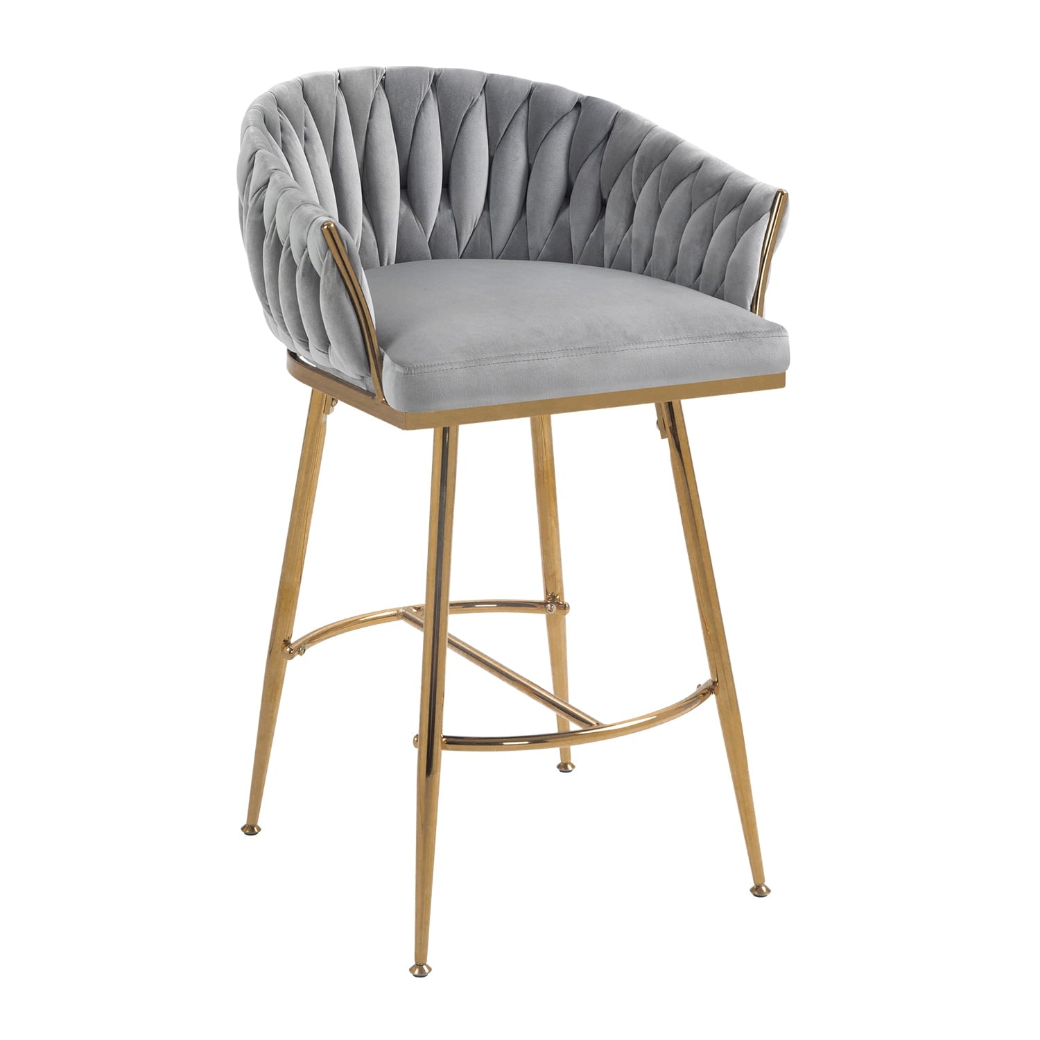 26in Counter height bar stools velvet kitchen island counter bar stool with hand- wave back,golden chromed base and footrest