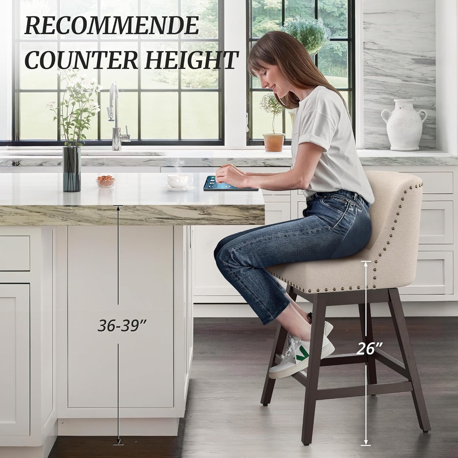Dycanpo 26in H Swivel Counter Stools Set of 4 with Back Linen Fabric for Home Kitchen Island