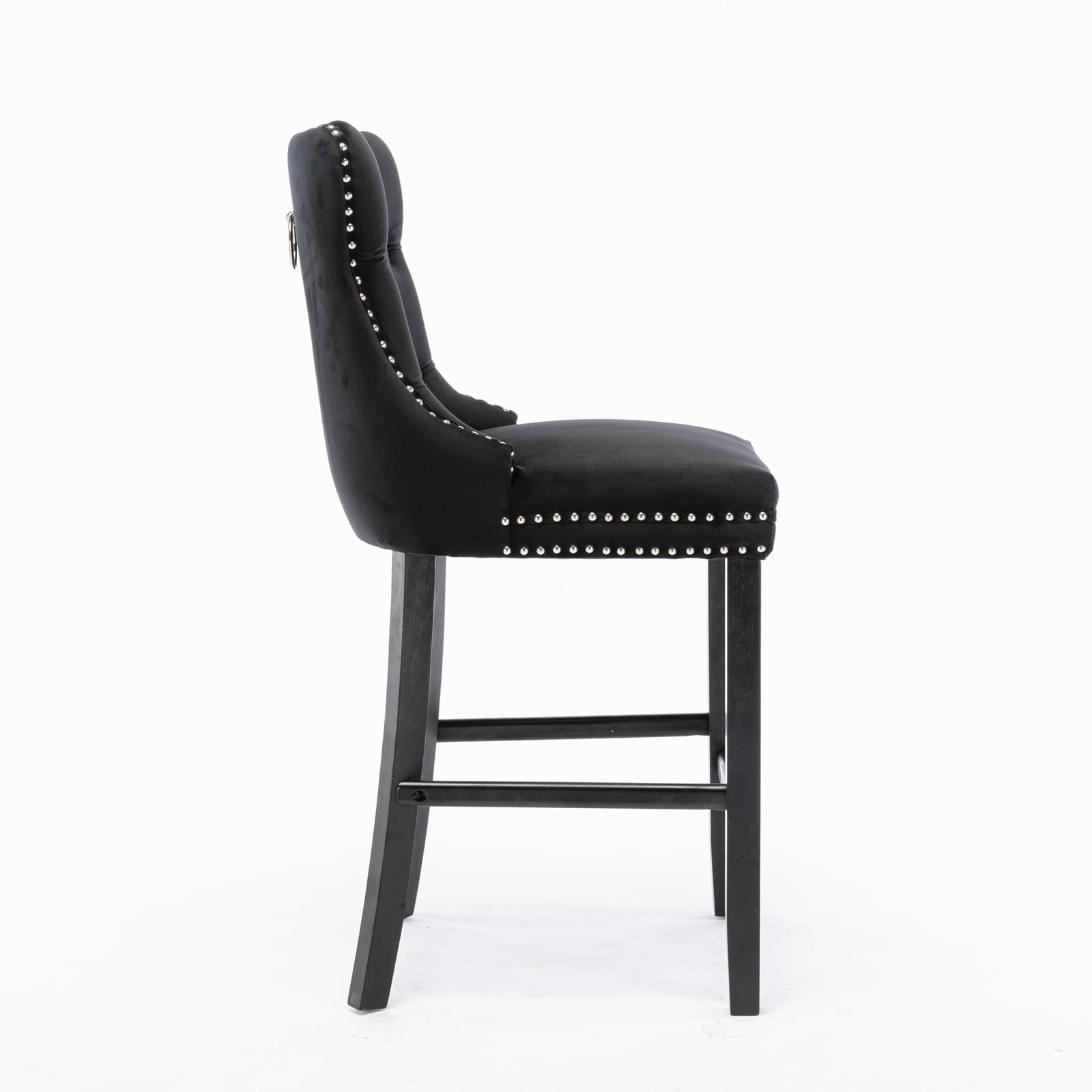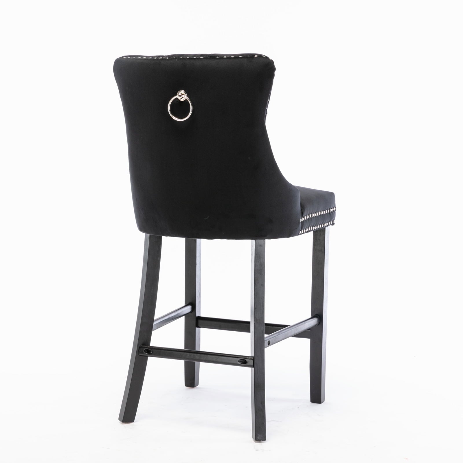 27in Contemporary Padded Bar Stools, Tufted Velvet Upholstered Barstools with Button Tufted Decoration, Chrome Nailhead Trim, Footrest and Solid Wood Legs (Black,Set of 6)