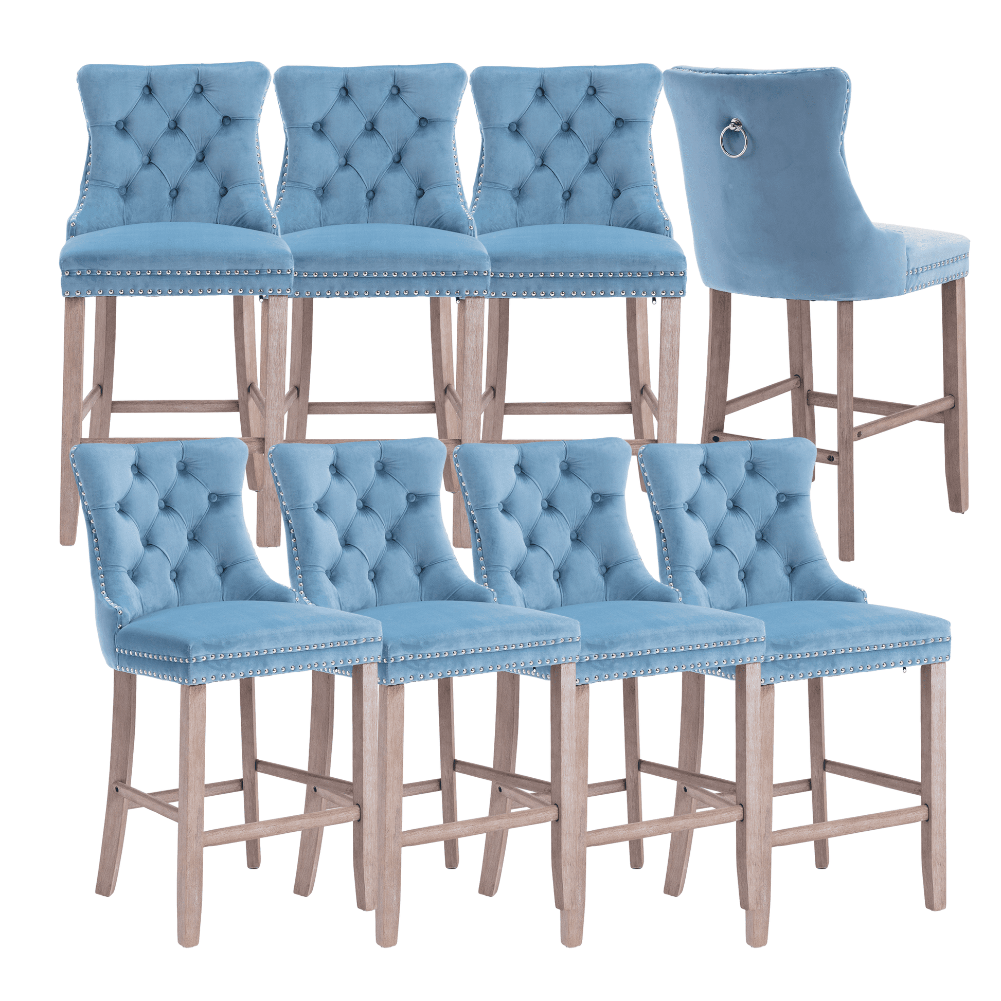 27in Contemporary Padded Bar Stools, Tufted Velvet Upholstered Barstools with Button Tufted Decoration, Chrome Nailhead Trim, Footrest and Solid Wood Legs (Light Blue,Set of 4)