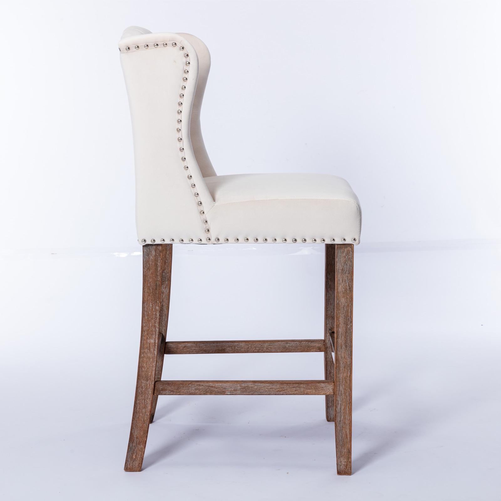 - The modern tufted design is matched with the nailhead trim around the bar chair. This is a modern and advanced design style. The wing back with artful design takes comfortable shape on back to provide a high-level touch and comfortable experience.