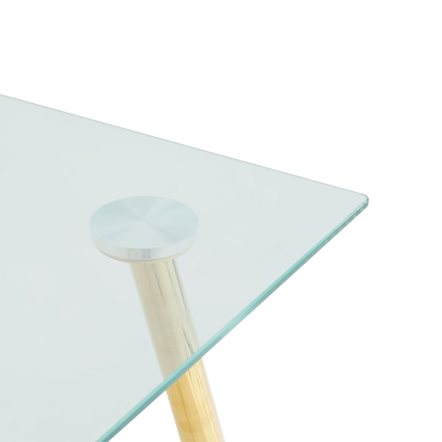 29.5H?Æù Kitchen Glass Dining Table with Chrome Metal Legs, Modern Rectangular Tempered Glass Table top for Kitchen & Dining Tables, Golden Table Legs