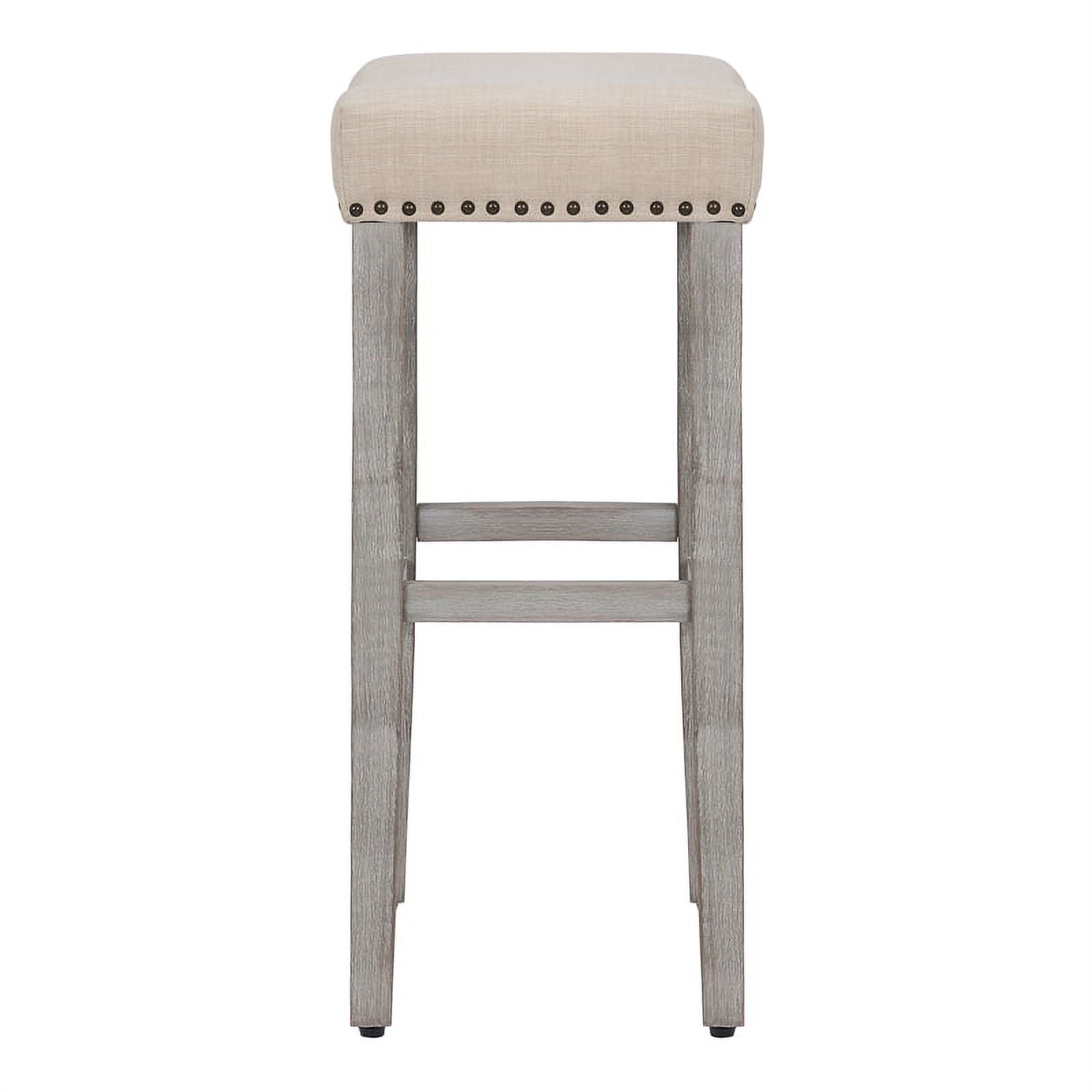 Give your kitchen a stylish update with these attractive barstools. With solid rubberwood legs and seat frame, the stool is sturdy for safe and reliable sitting. The upholstered seat with nailhead trim makes it an eye-pleasing piece to liven up your space. Designed with decent height and convenient footrest, this chair fits perfectly with higher tables, counters, and kitchen islands, etc.