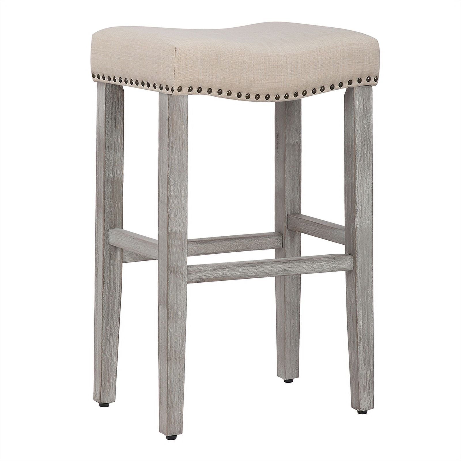29in Upholstered Saddle Seat Bar Stool (Set of 2) in Beige