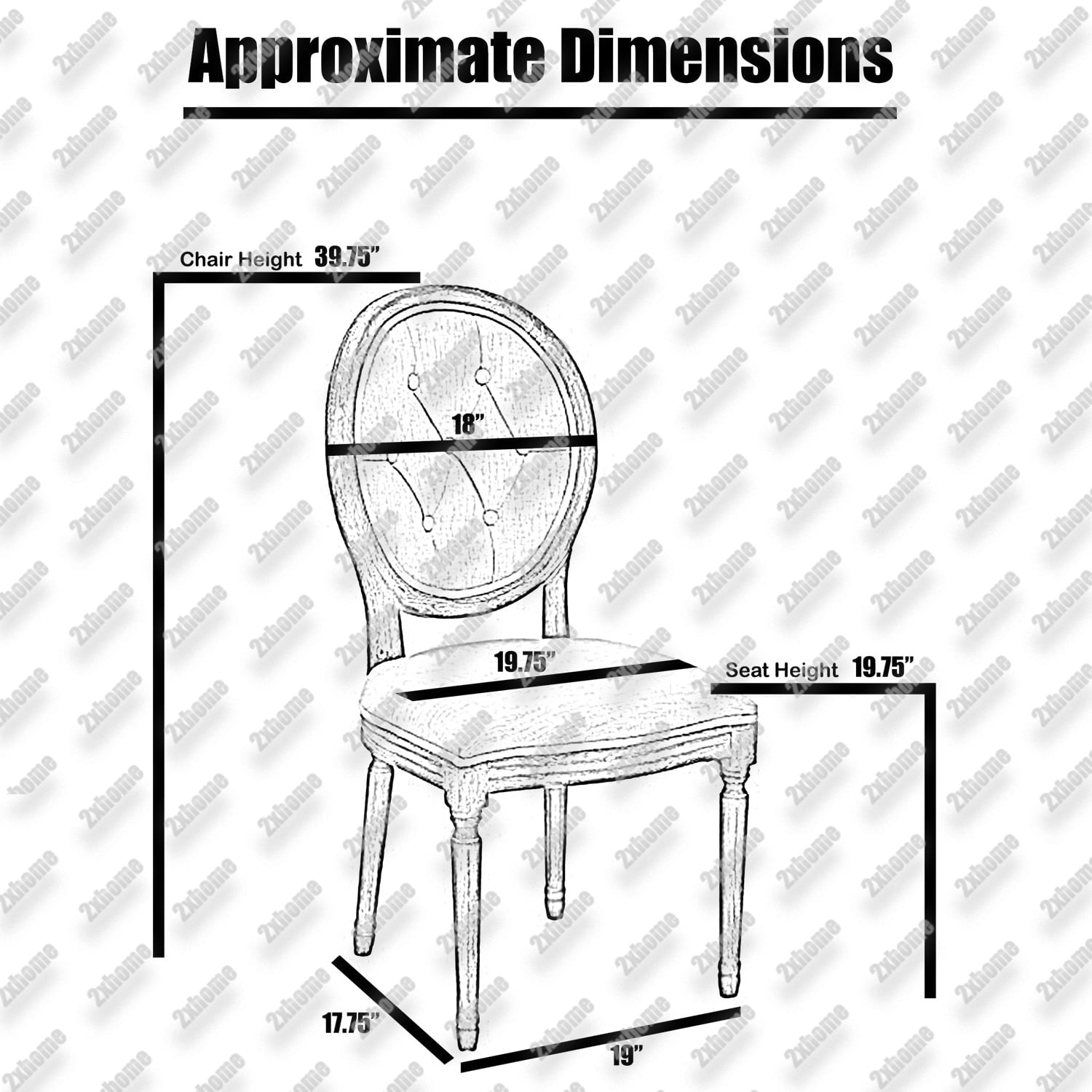 2xhome - French Chic Vintage Style Dining Side Chair With Upholstered Linen Welted Fabric And Elegant Natural Rustic Wood Frame - Tufted Button Oval Back