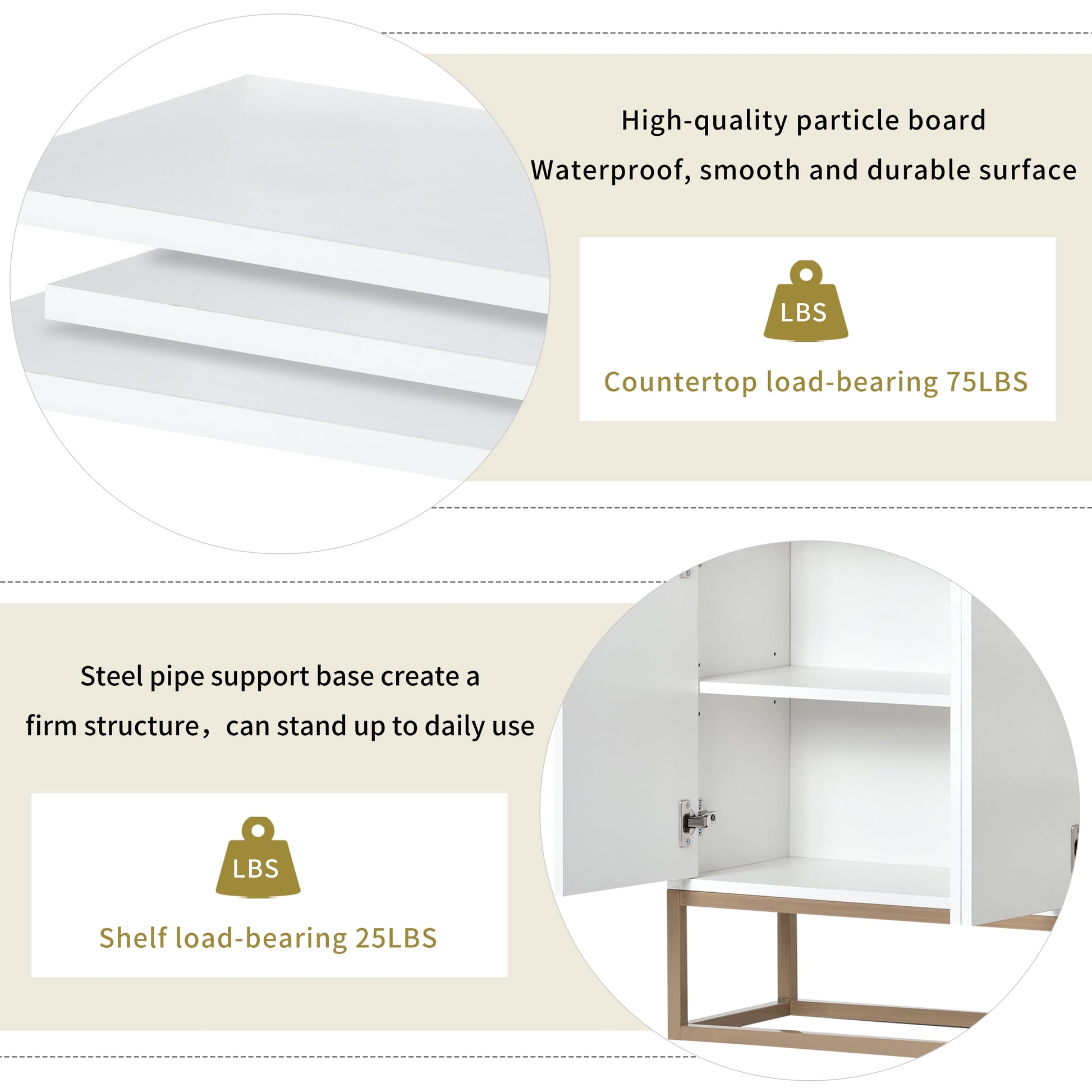 - High-quality particle board and steel pipe support base create a firm structure. The surface of the triamine sticker is waterproof, smooth and durable, the countertop load-bearing 132LBS, the shelf load-bearing 66LBS. It can stand up to daily use even in the long run without losing its stylish charm.