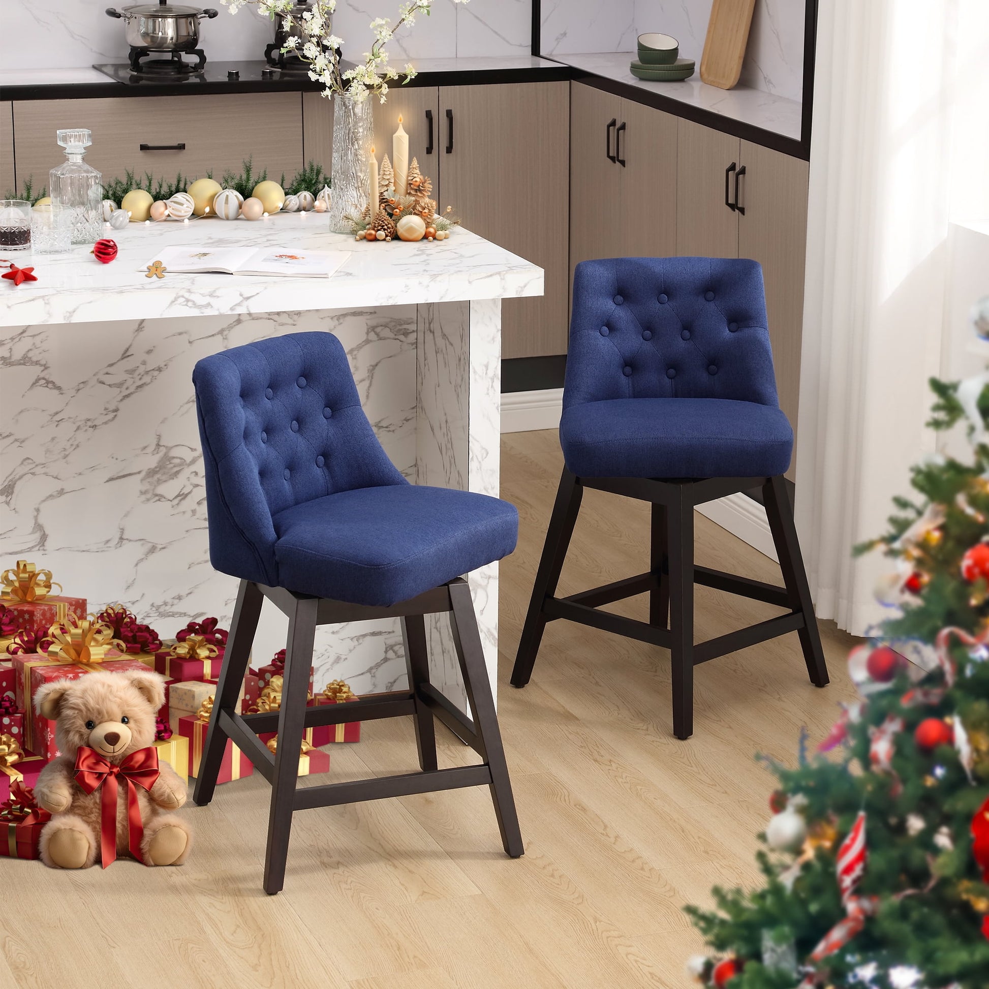 TEWLOSS Bar Stools Set of 2 Fabric Swivel Counter Height Bar Stools for Kitchen Island (26in , Blue)