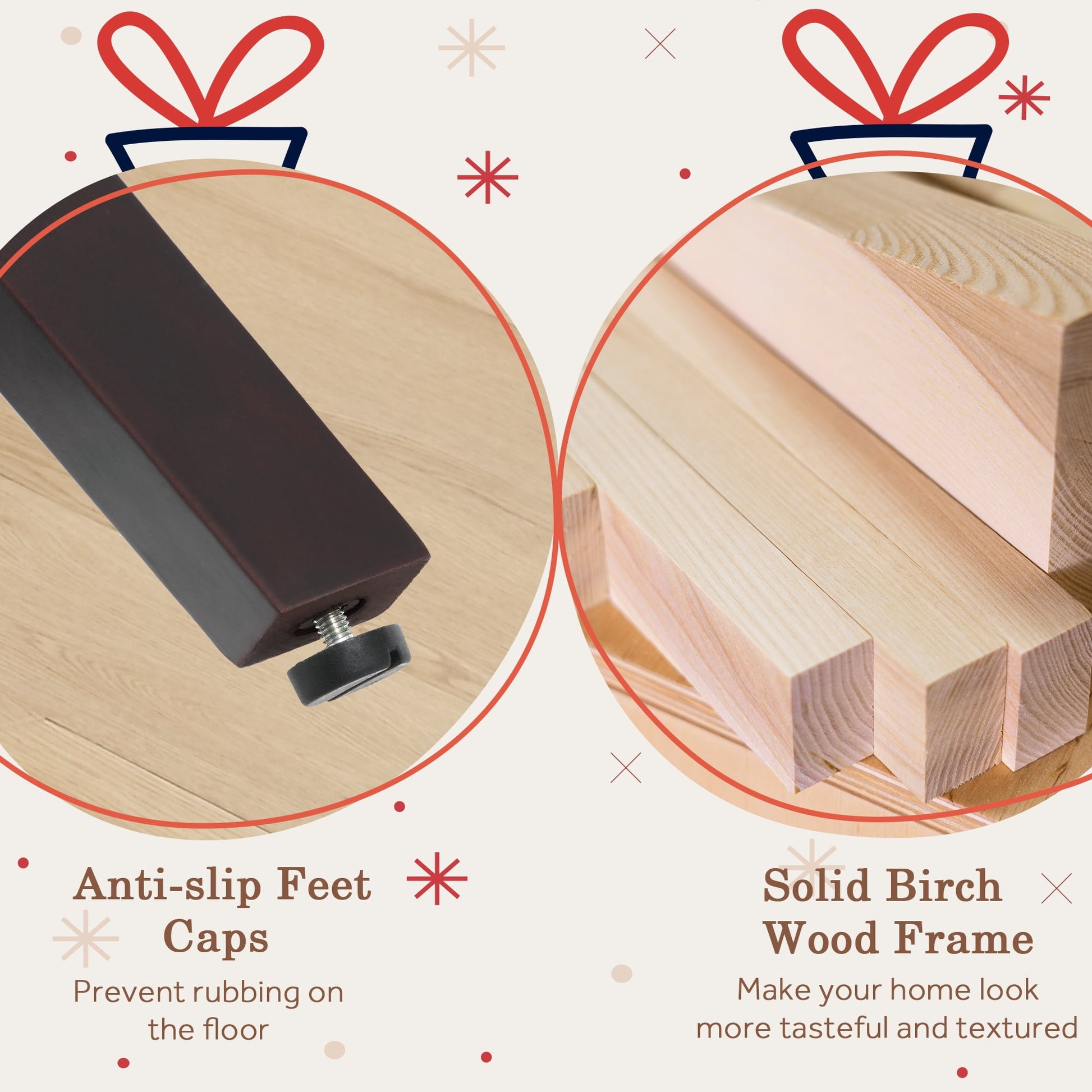 Solid Wooden Legs: The legs are made of high-quality solid birch wood, treated to enhance strength and durability, and prolong the chairs' lifespan. sillas para barra de cocina with foot caps to prevent floor scratches. Weight capacity: 330 lbs.