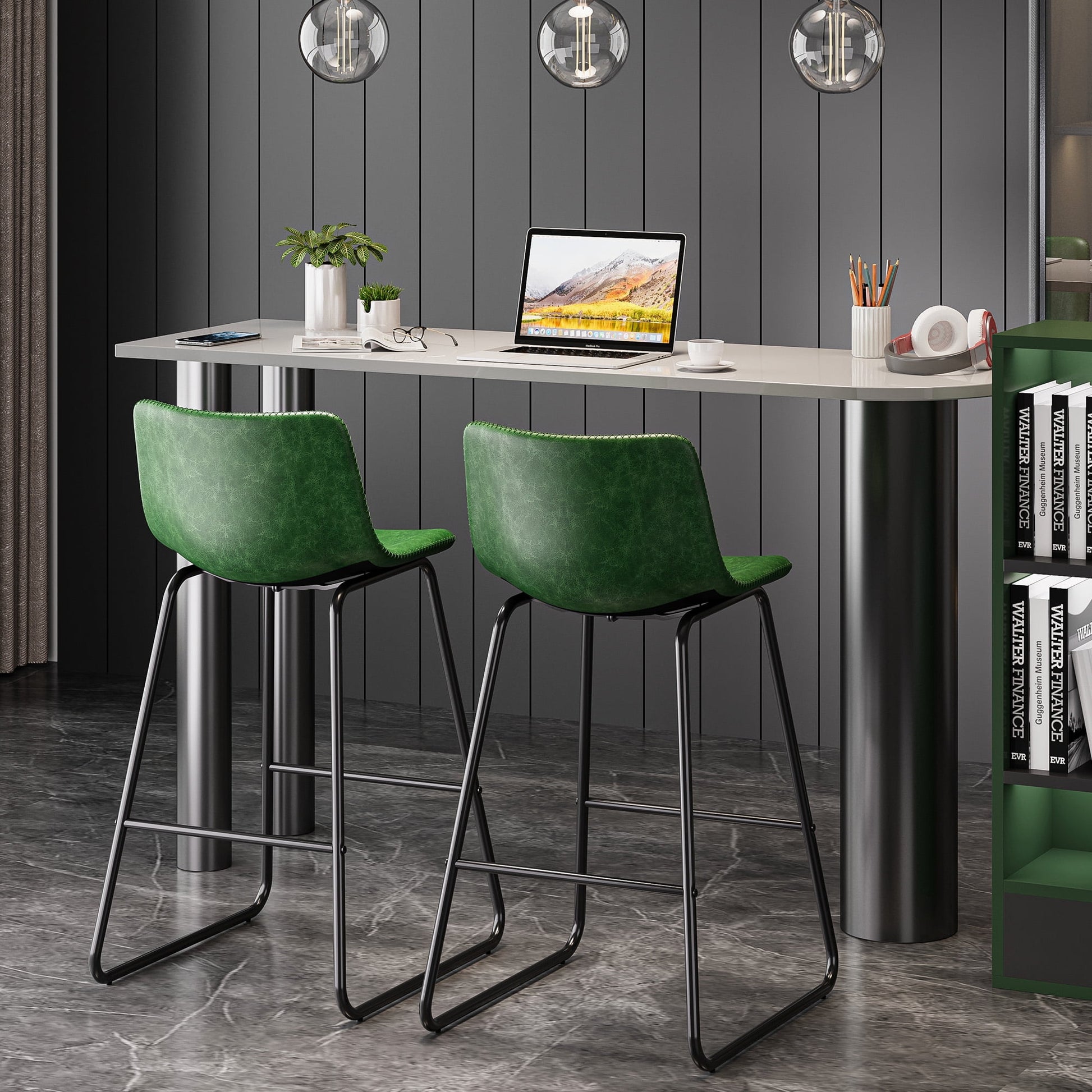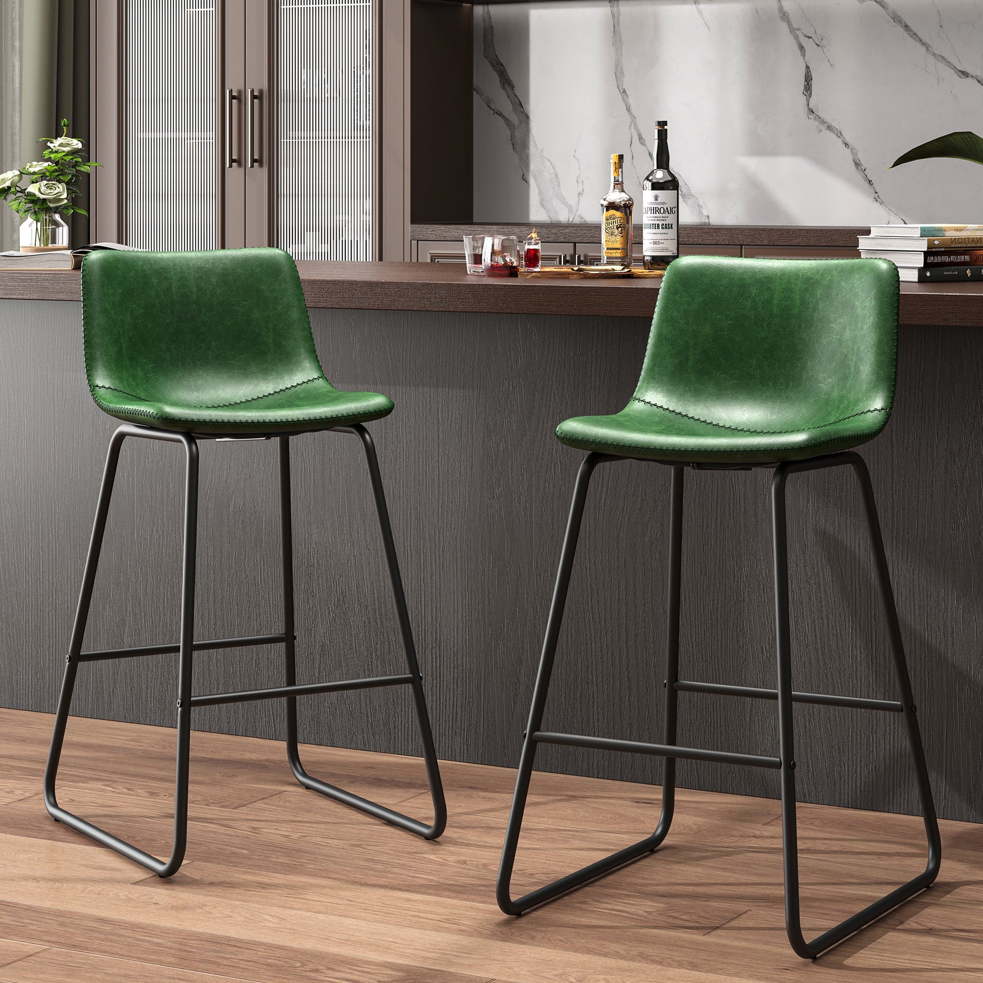 YaFiti Bar Stools 26in Faux Leather Counter Height Barstools with Back Set of 2, Modern Counter Stools with Metal Legs and Footrest, Armless Chairs with Back for Kitchen Living Room Pub, Green