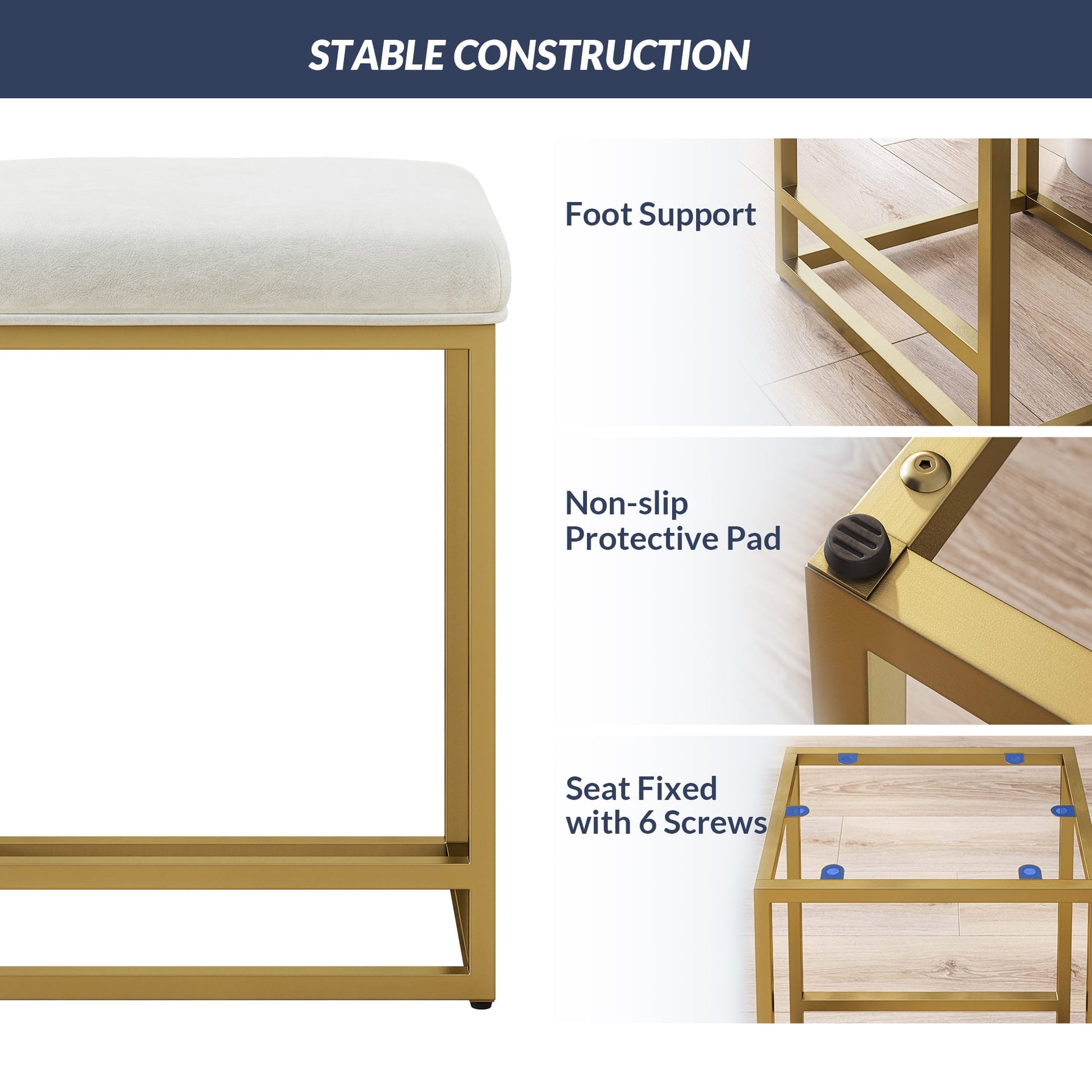 BELLEZE 24in Backless Bar Stools Set of 4, Counter Height Barstools, Modern Upholstered PU Leather Counter Stools with Metal Base Kitchen Island Chairs Dining Chair, White & Gold