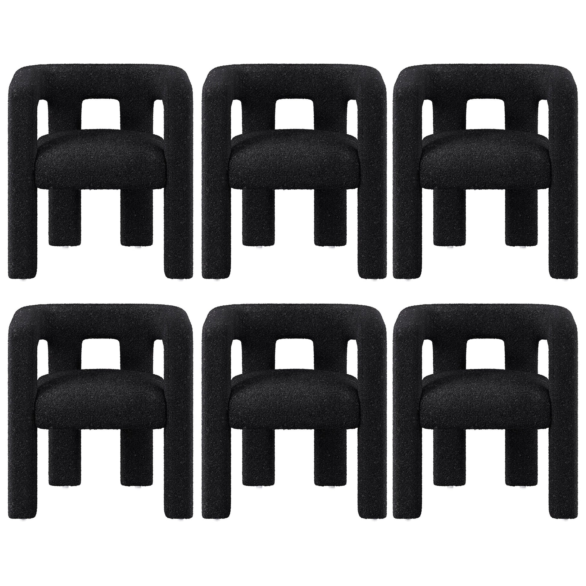BELLEZE Modern Boucle Chairs Set of 6, Linen Dining Chairs with Barrel Sidearms and Back, Minimalist Upholstered Kitchen Armchairs for Dining Room - Lisbon (Black)