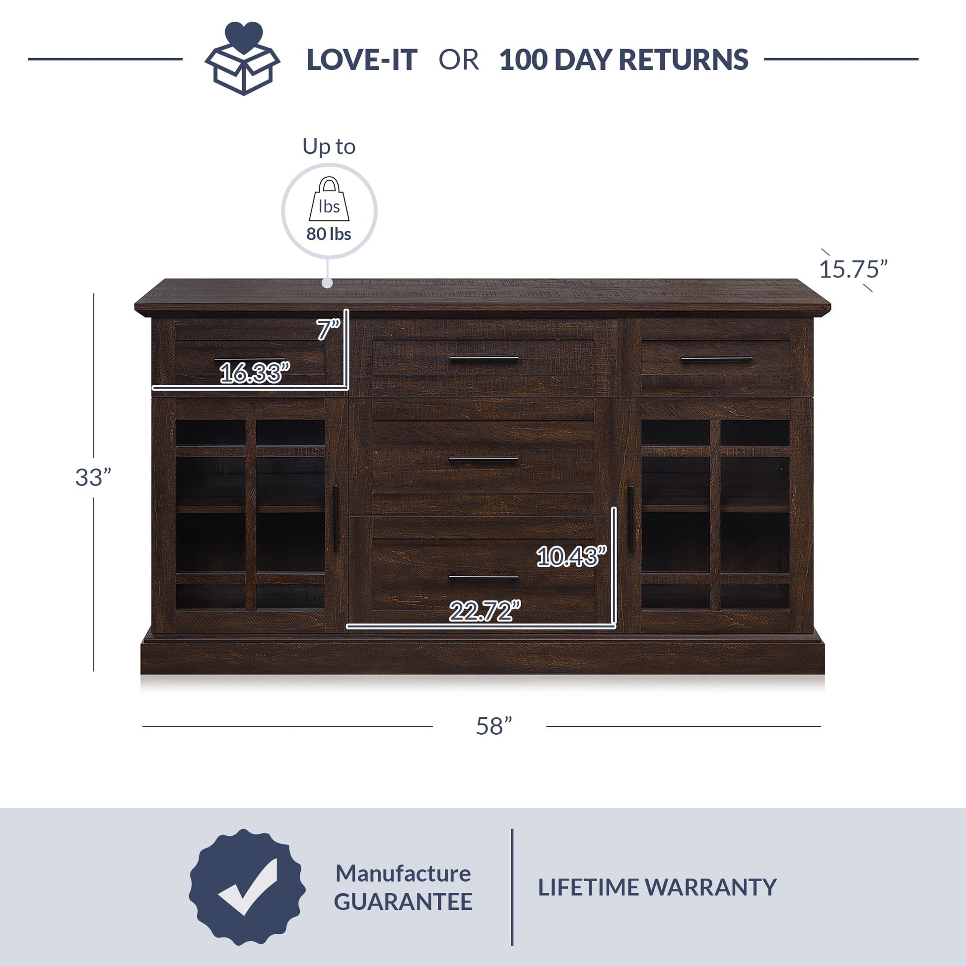 This sideboard is built to last and will enhance your home for years to come. Overall dimensions: 58\