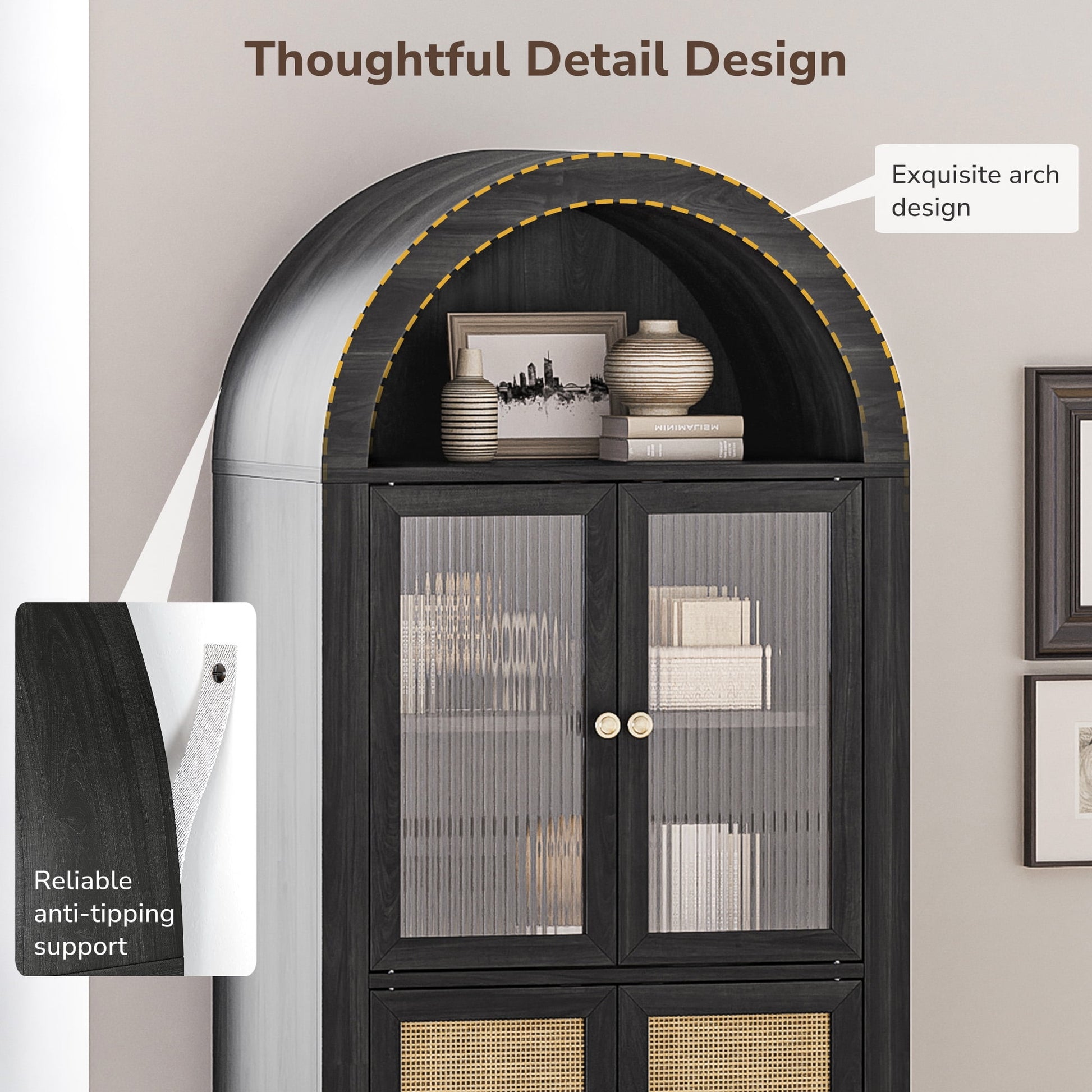 - Made from robust manufactured wood, tempered glass, and PE rattan, ensuring it's not just a china cabinet, but a timeless piece of furniture.