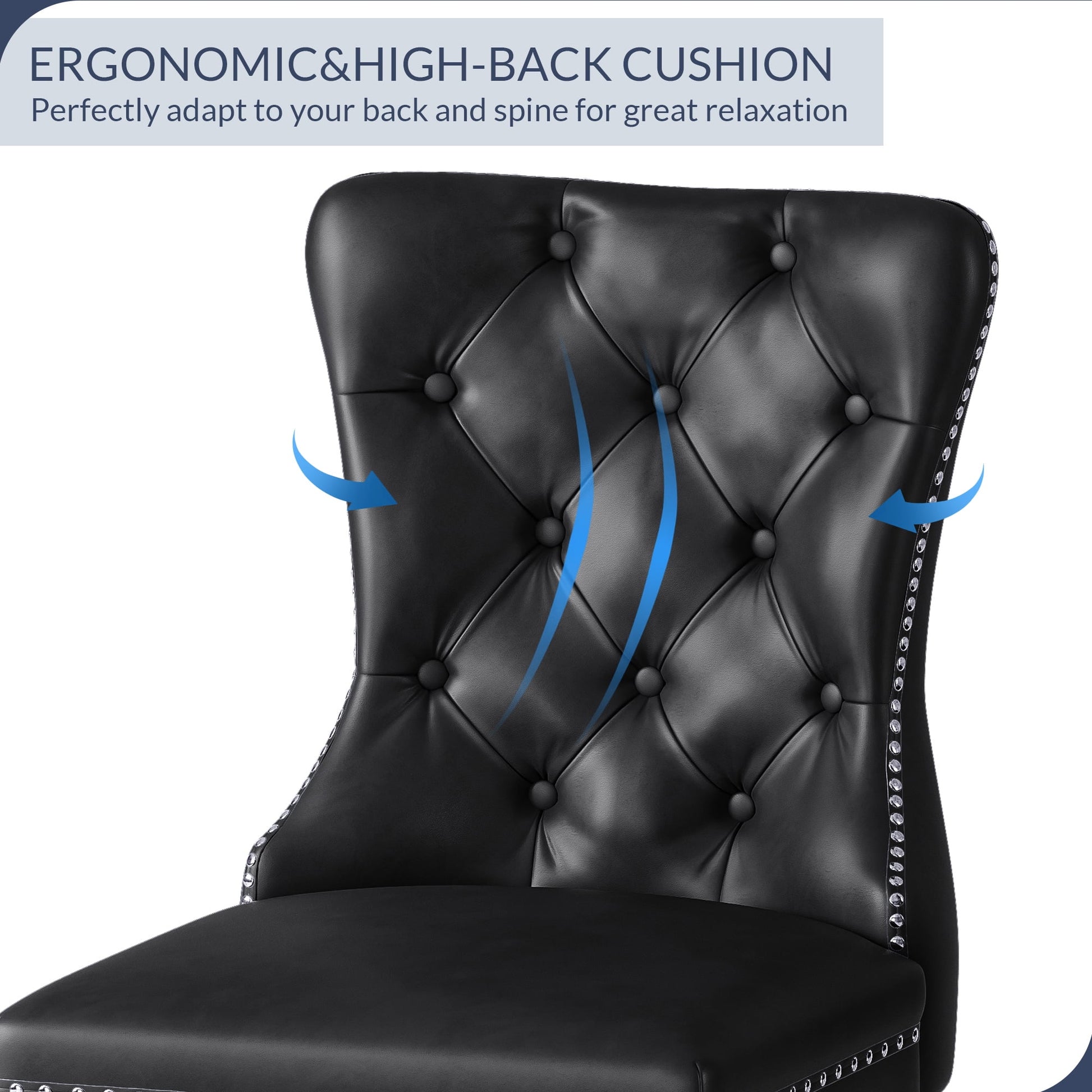 This pair of two elegantly beautiful chairs are a sight to behold and a dreamy comfort to sit in. Especially as part of a dining room set, these two faux leather upholstered chairs blend modern lines and silhouettes with mid-century-inspired heritage. High-quality foam and soft faux leather cover the seats and tufted backs. The finishing touch is the willow nailhead trim that offers a display of refinement. Having these dining chairs in your home adds to the conversations, comforts, and good times.