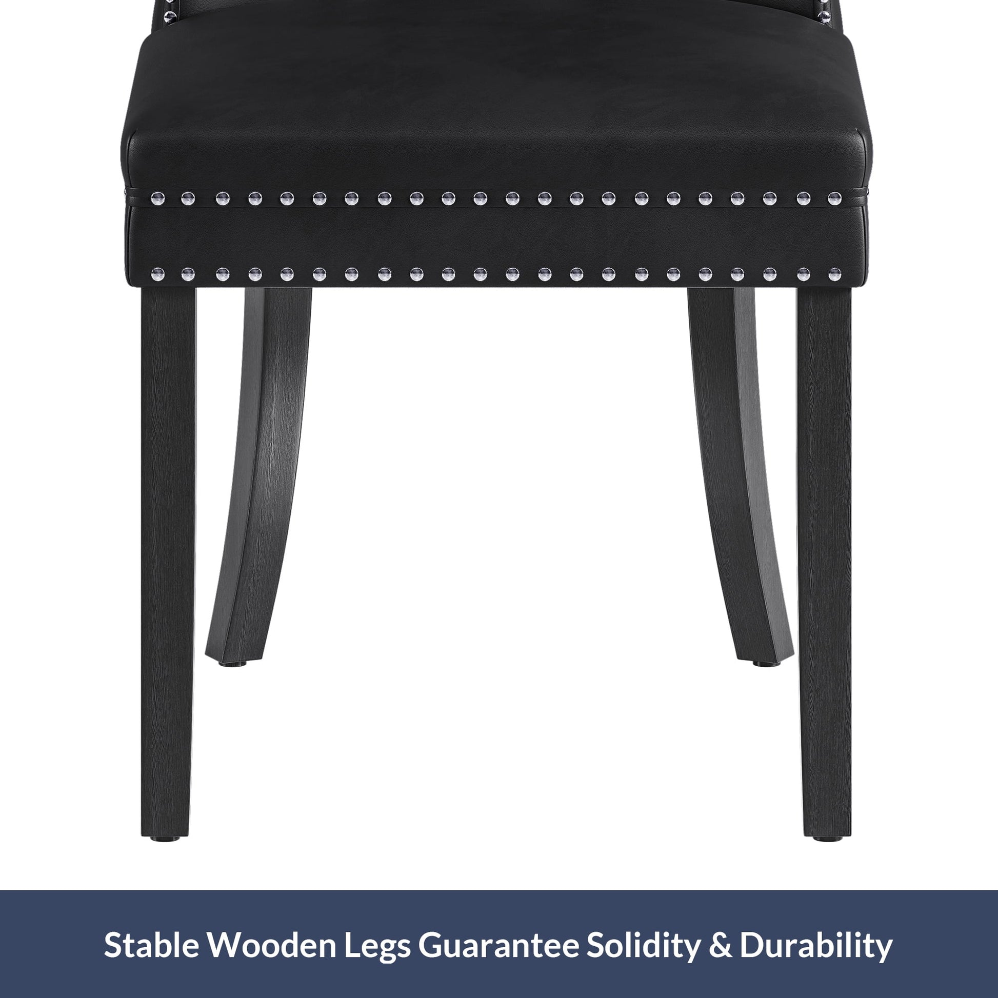 BELLEZE Upholstered Dining Chairs Set of 2, Faux Leather Luxury Dining Room Chairs with Button Back, Nailhead Trim, Pull-ring, Solid Wood Legs for Kitchen, Living Room, Restaurant - Chandler (Black)