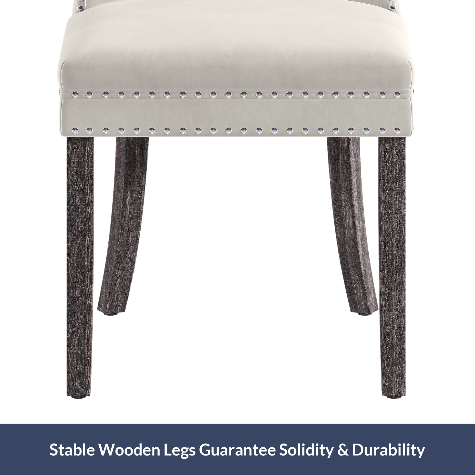 - These dining chairs set of 2 are mid-century inspired with decorative willow nailhead studs and royal button tufted wingbacks.