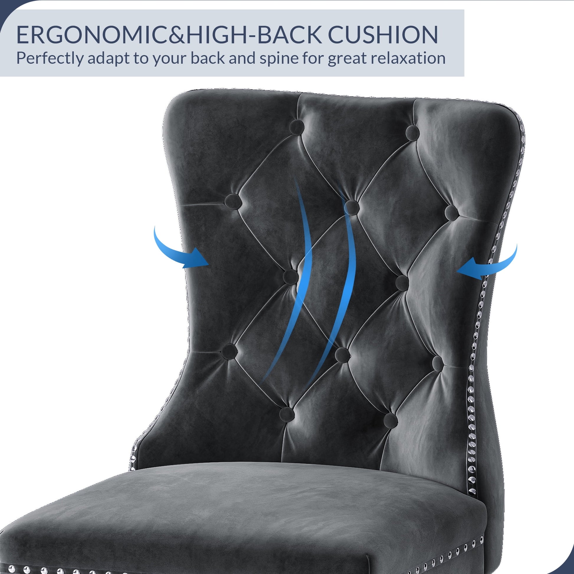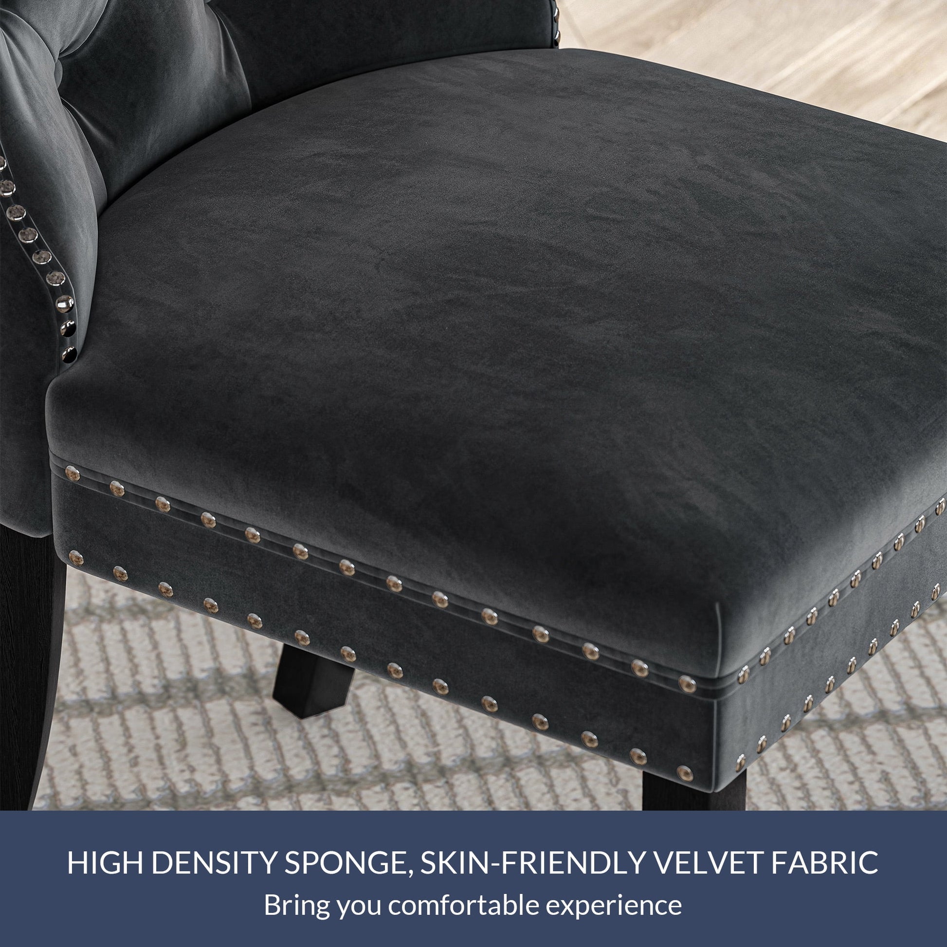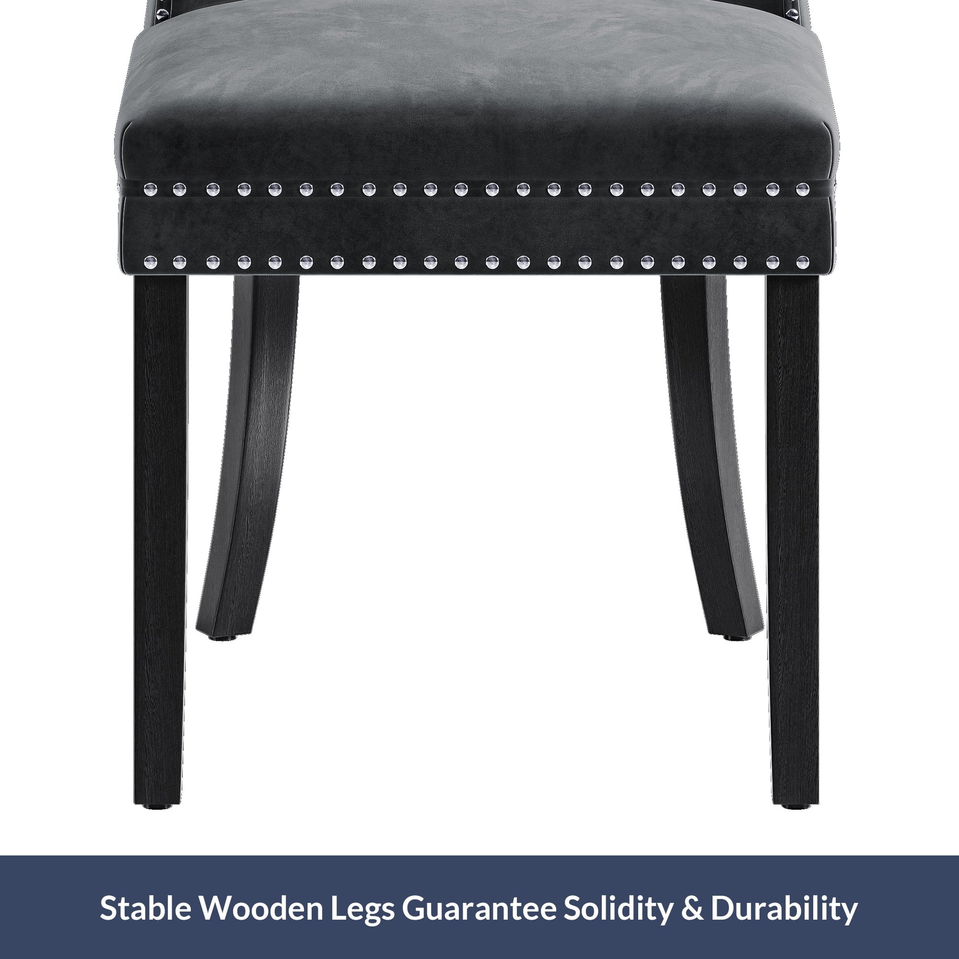 BELLEZE Upholstered Dining Chairs Set of 2, Velvet Luxury Dining Room Chairs with Button Back, Nailhead Trim, Pull-ring, Solid Wood Legs for Kitchen, Living Room, Restaurant - Chandler (Grey)